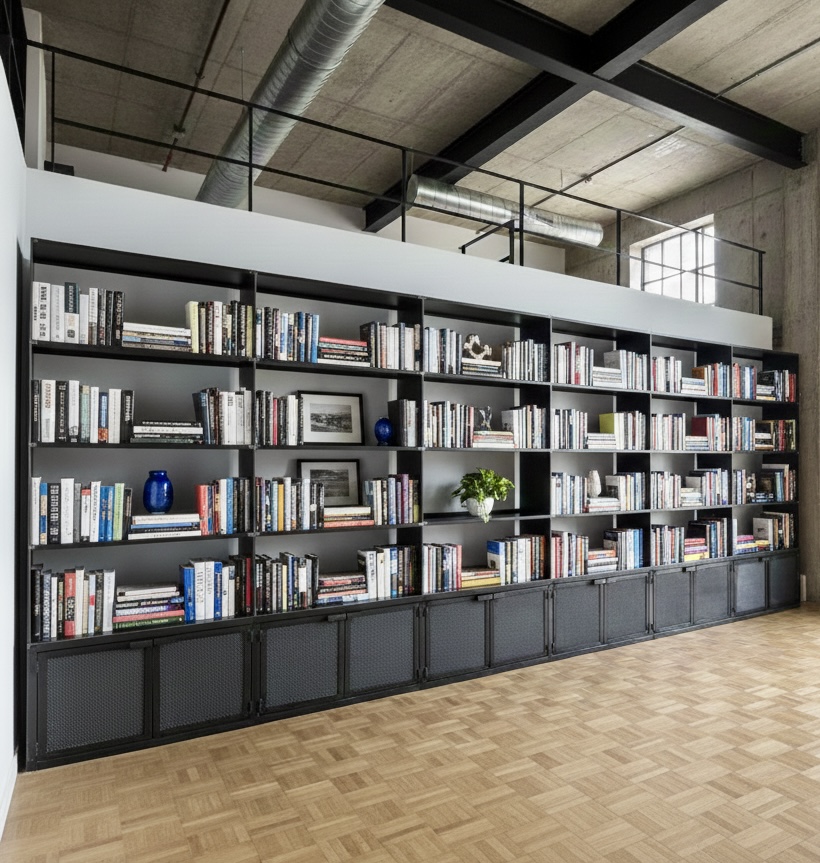 Librerías de hierro, a medida, en diferentes acabados y muebles de hierro, a medida, con estantes para decorar diferentes espacios.